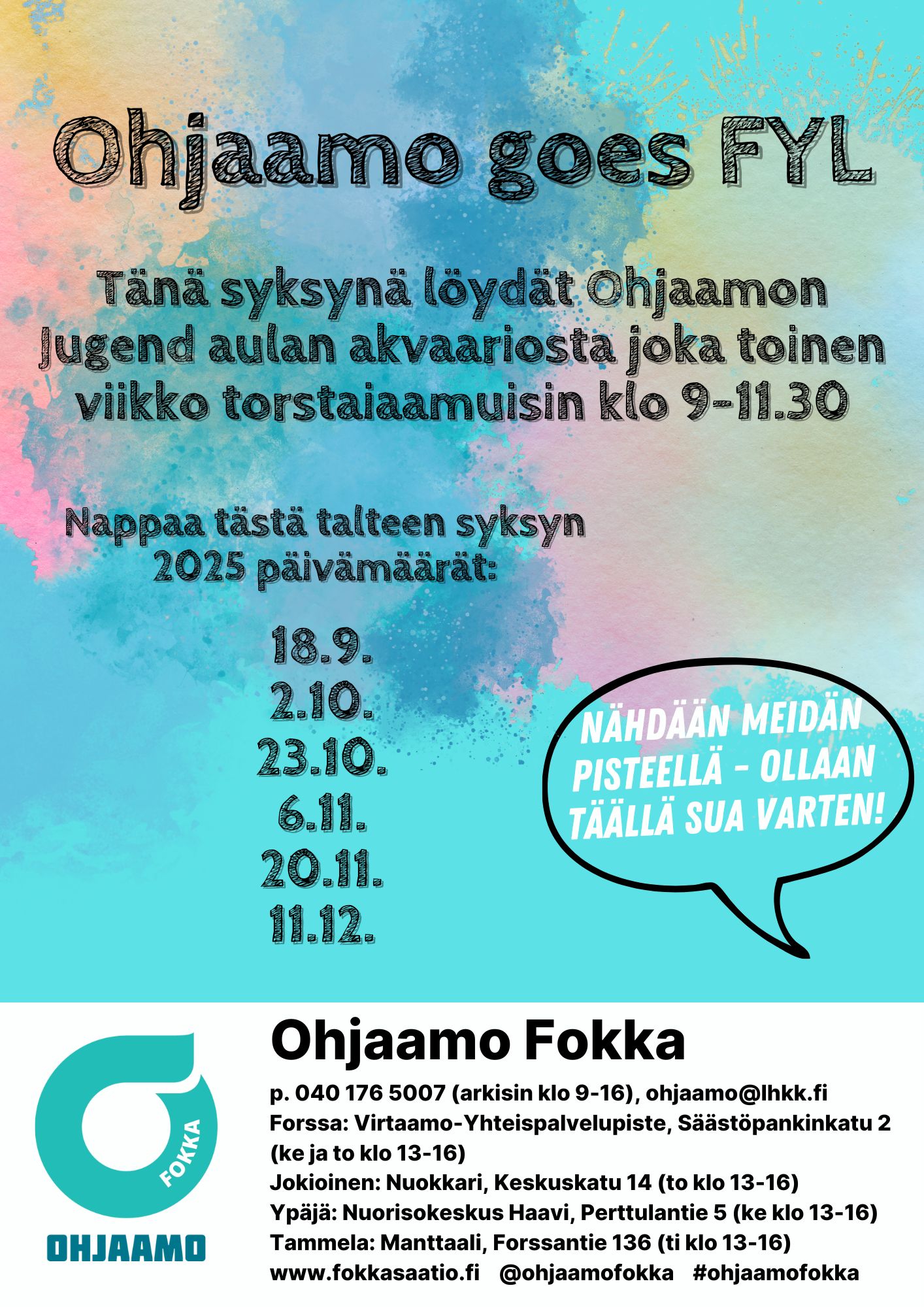 Ohjaamo Fokka toimii Forssassa, Jokioisilla, Tammelassa ja Ypäjällä.